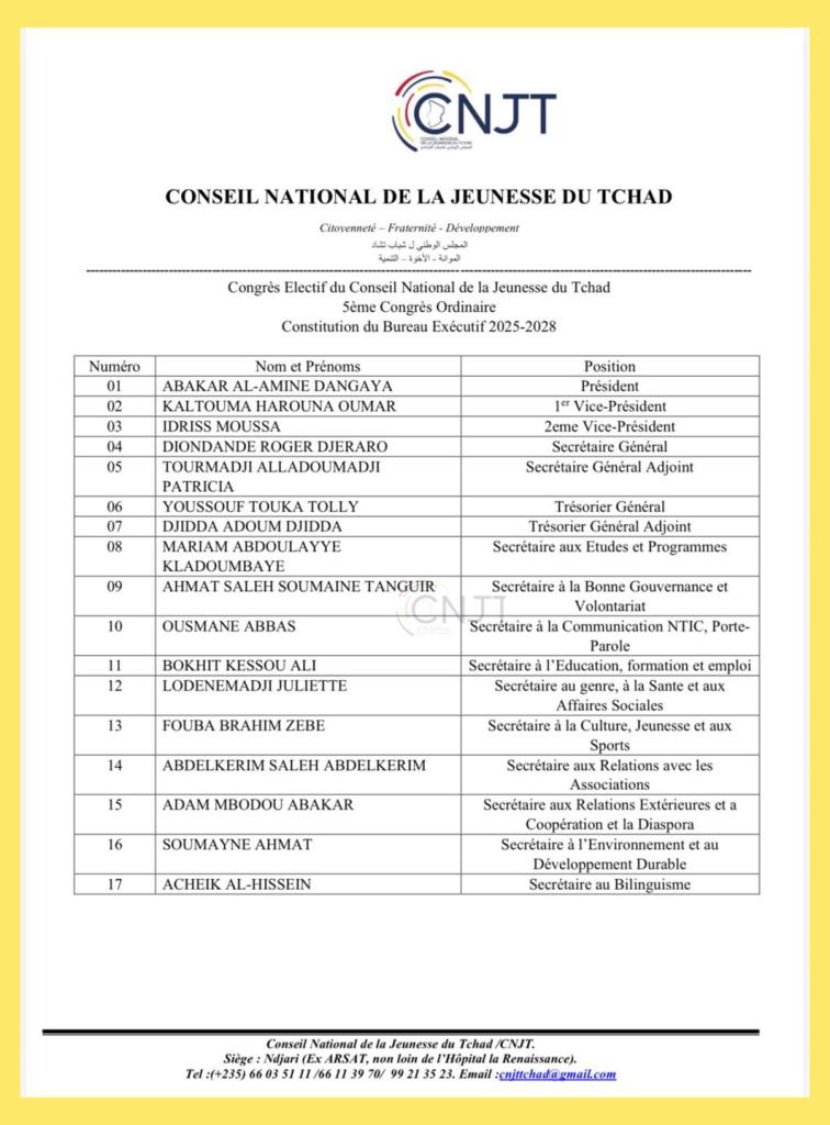 Le temps est venu de reconstruire. La jeunesse tchadienne mérite mieux qu’un théâtre de querelles internes : elle mérite une institution forte, visionnaire et éthique. Le CNJT peut et doit renaître — à condition que ses acteurs acceptent enfin de mettre la maturité au service du collectif. Quitte aux jeunes de faire une différence entre les appartenances politique, religieuse, sectaires, etc. pour redorer le blason.