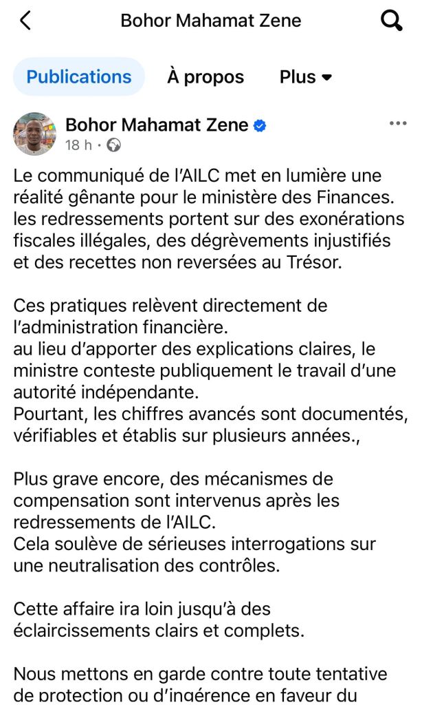 L’analyse de Bohor Mahamat Zene, un observateur Tchadien, pointe une tentative de dépolitisation forcée du débat. En contestant les chiffres sans les réfuter sur le fond, le ministre semble vouloir neutraliser les contrôles, notamment à travers des mécanismes de compensation post-redressement, dont le montant dépasse 98 milliards FCFA.